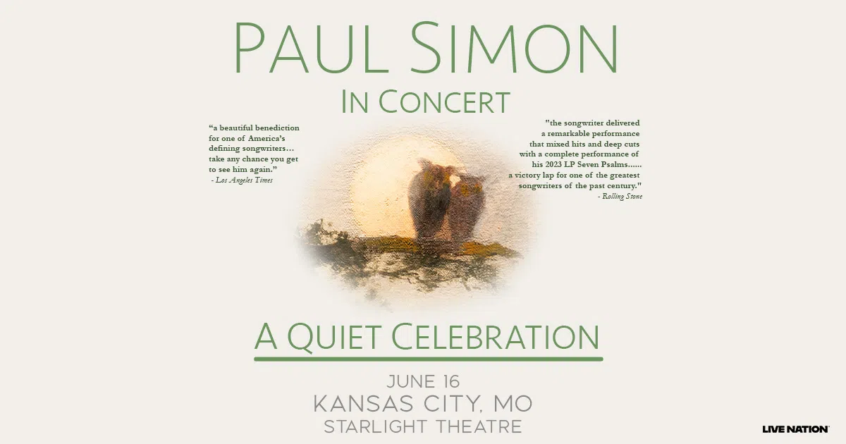 Experience a once‑in‑a‑generation night with Paul Simon, returning to Kansas City for A Quiet Celebration — an intimate, career‑spanning performance under the stars at Starlight Theatre on June 16th.